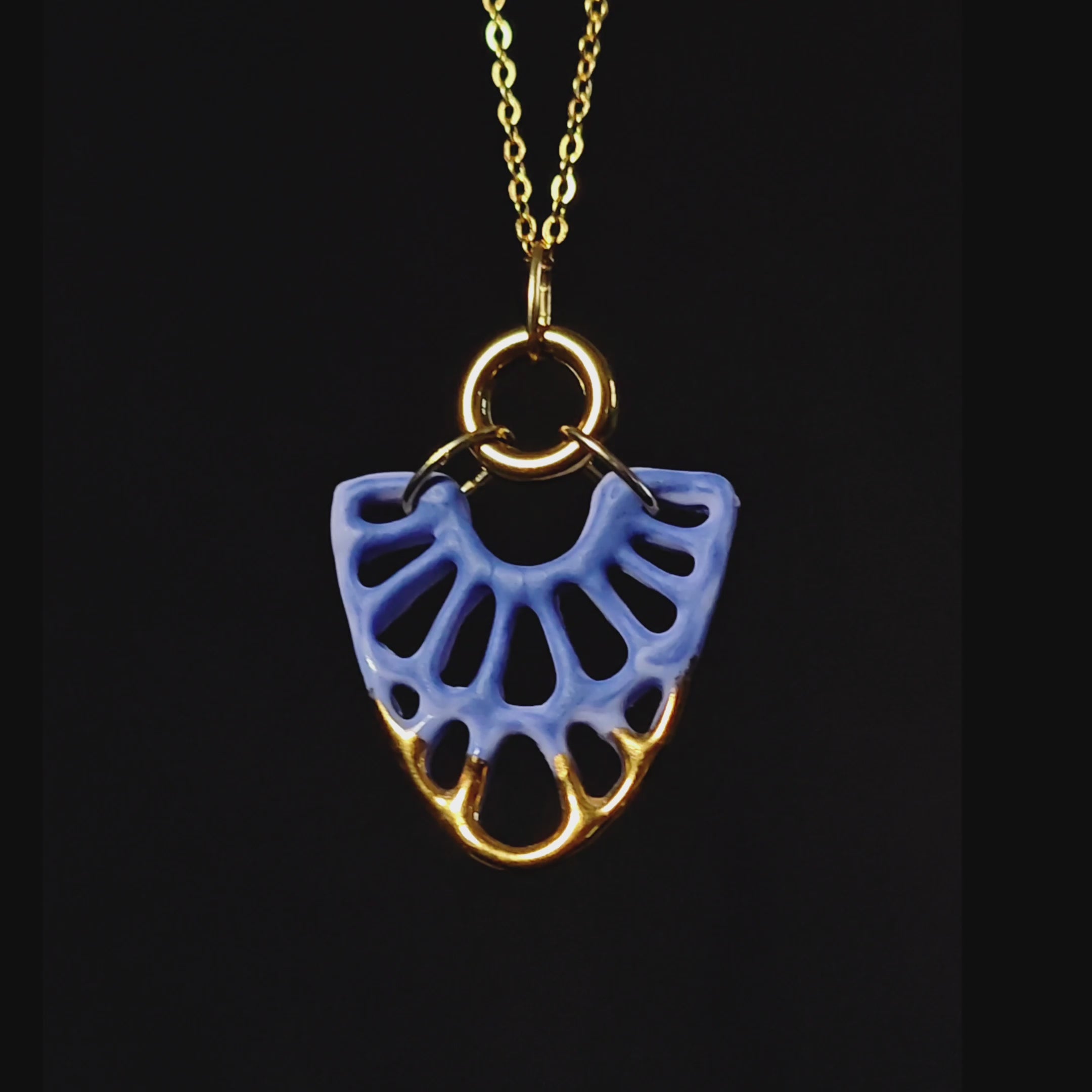 Porcelain lace pendant, handcrafted from bone china and glazed with 24k gold lustre glaze.